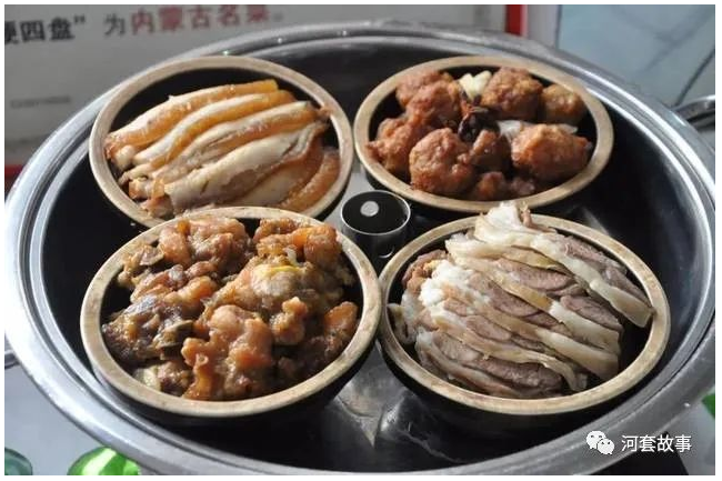 二次是外省来了一个“走西口”寻亲团,有关单位设宴招待他们。席上有本地的猪肉烩酸菜,炖羊肉,硬四盘,腌猪肉勾红公鸡,牛腩贴小蒸饼等硬菜,还有肉焙子,糖麻叶,酿皮等本地小吃,喝得是河套酒业的“五星河套王”。宴会后,饭食口味上基本相似的外省寻亲团成员都说是吃了一顿终身难忘的美味。第二天一早他们去了“财全肉焙子店”吃早点,每人一个肥瘦相间的肉焙子,一碗豆腐粉汤下肚后一行人都说真好吃,还说你们陕坝人真有口福,这是我第二次听到这句话。