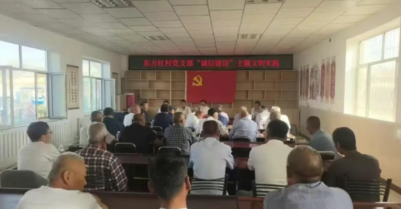 近日,东方红村新时代文明实践站开展“诚信建设进乡村”活动。活动现场以“诚信是乡村最美的底色”为主题,书记讲述身边诚信故事、志愿者设台答疑、开展“快问快答”抢答互动,通过多种形式强化村民的诚信意识。
