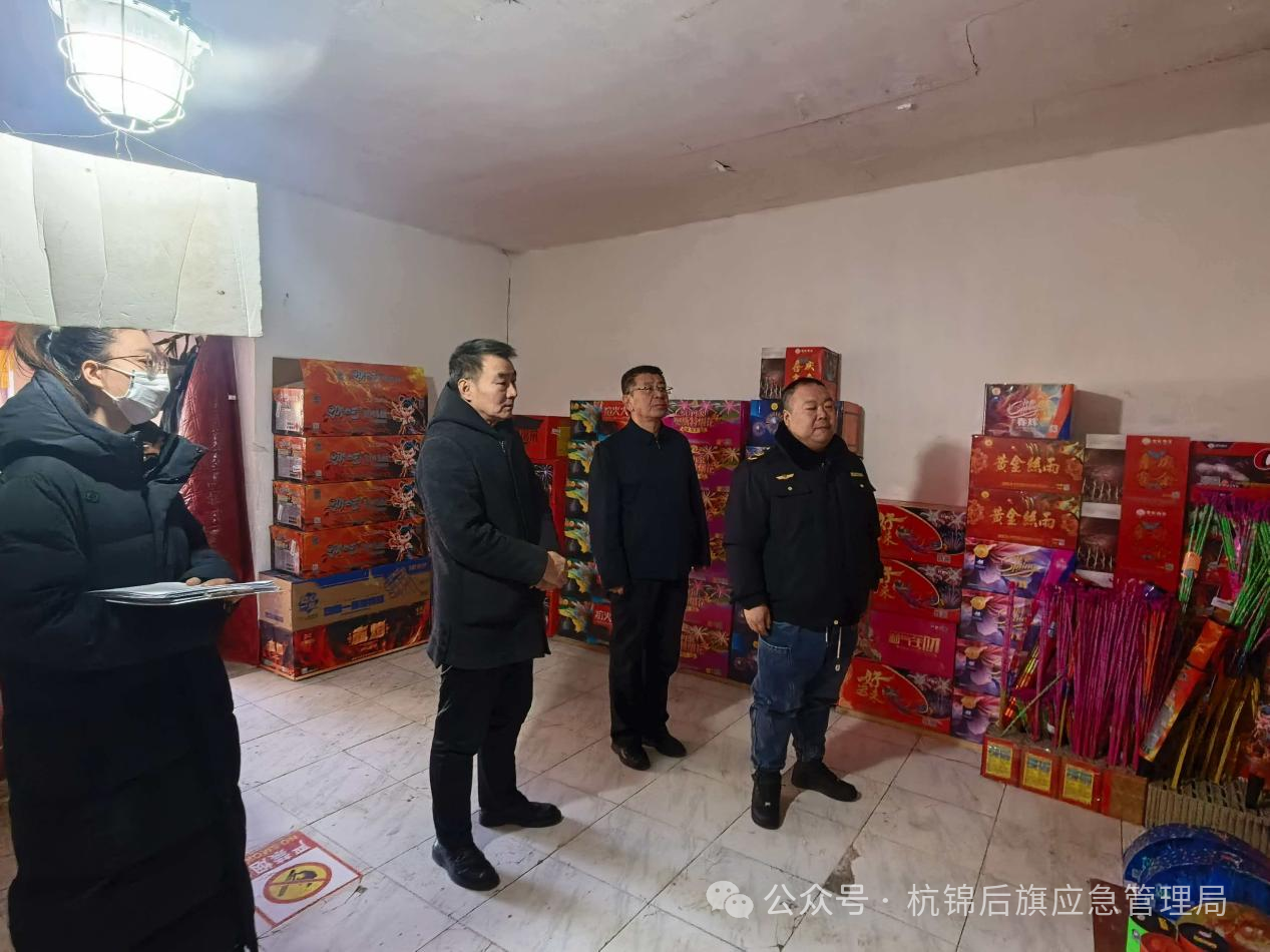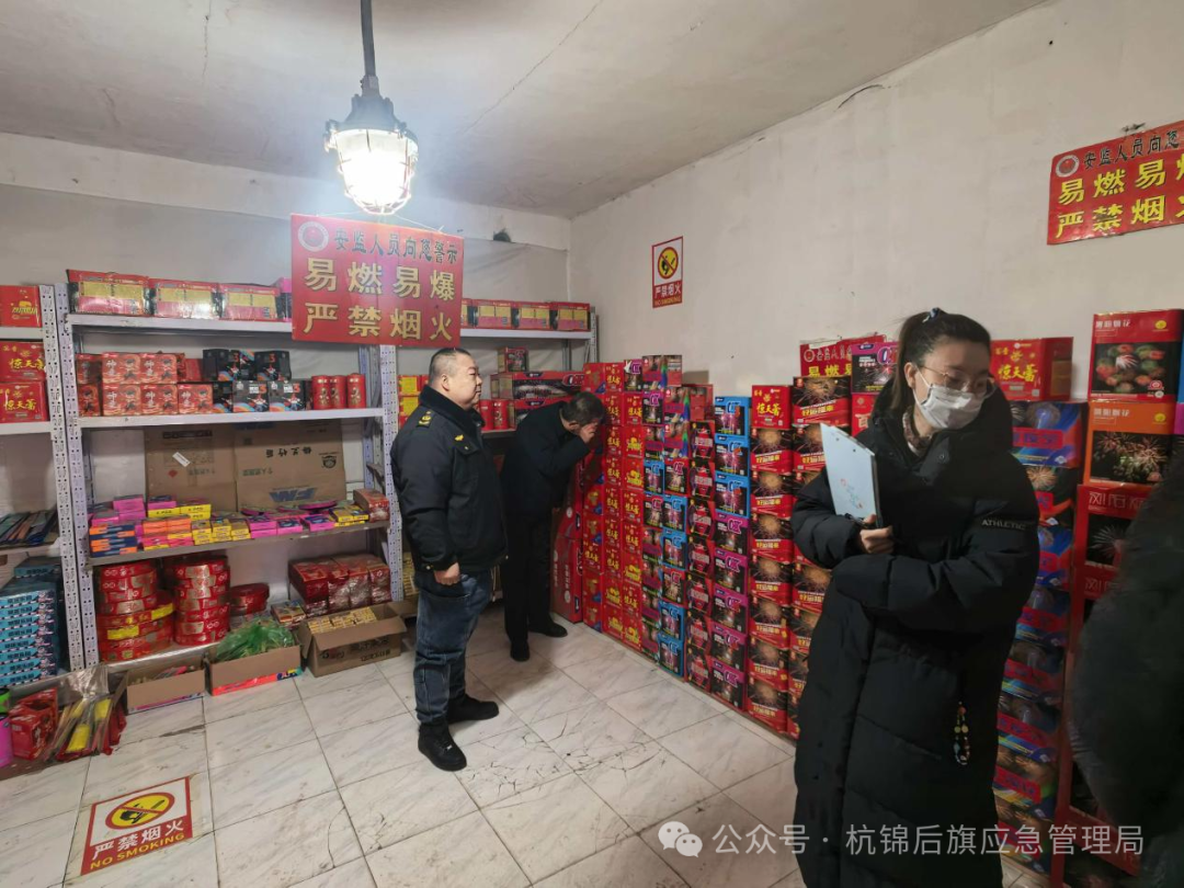 为进一步深入贯彻落实应急管理部《关于加强岁末年初烟花爆竹生产经营安全监管的工作提示》、巴彦淖尔市应急管理局、公安局、市场监督管理局印发的《关于开展 2026年烟花爆竹“打非治违”联合专项排查整治行动的通知》要求。2月6日,市旗两级应急管理局、市场监督管理局、公安局组织检查组,对全旗范围内开展烟花爆竹“打非治违”专项排查整治行动,以严标准、硬举措筑牢节日安全防线。